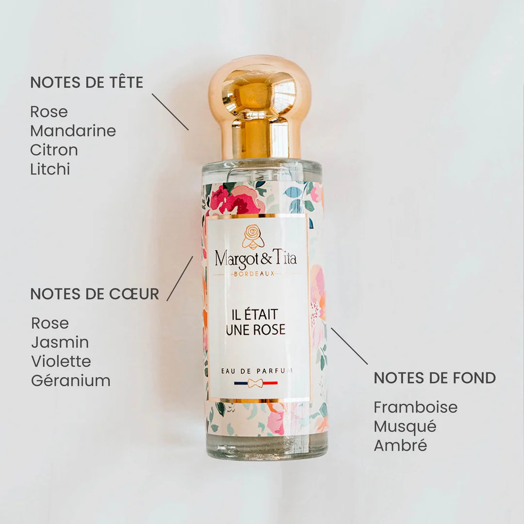 Une promenade dans les rues de Bordeaux, un matin où il fait si beau. Place des Capucins, le marché bat son plein. Sur les étals aux mille couleurs apparaît soudain cette fleur. La rose de Bulgarie. Au premier accord, elle délivre une facette acidulée et légèrement citronnée. Sa splendeur se révèle en son cœur où les notes rosées s’enveloppent d’une violette sucrée et d’un jasmin satiné. Son sillage est intense avec un accord musqué relevé de notes boisées. Il était une rose est ainsi né.