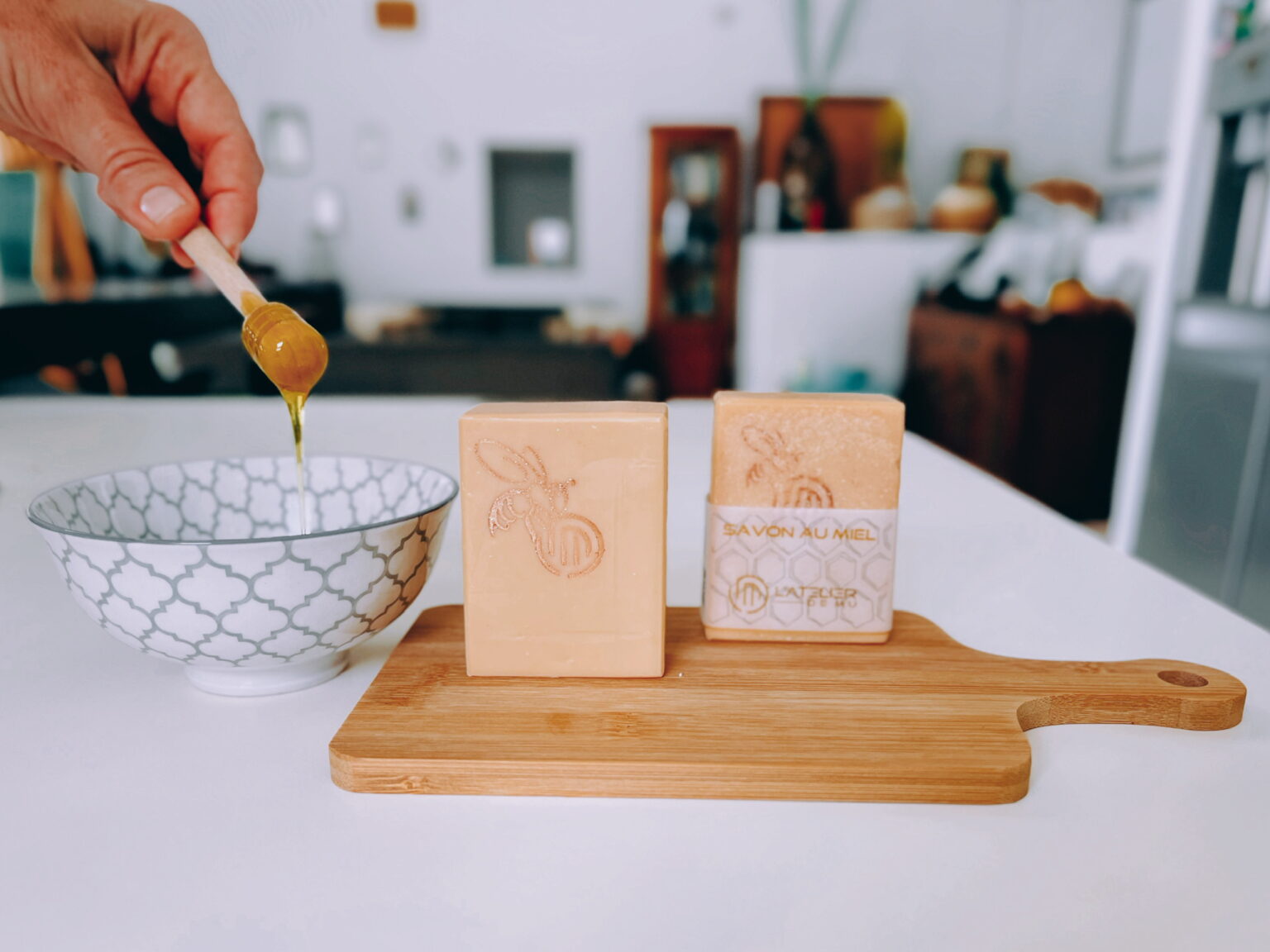 Savon saponifié à froid, surgras à 6%. Au Miel de La Réunion et au beurre de cacao pour un crémeux et une douceur incomparables sur la peau. Avec sa fragrance Miel, il est totalement addictif !